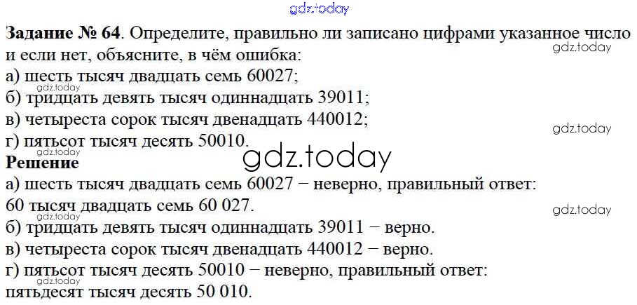 На страницах сайта gdz.today вы найдете учебный и вспомогательный материал, направленный на улучшения знаний школьной программы. ГДЗ - онлайн мир знаний 2.1. Как записывают и читают натуральные числа Решение к главе 2. Натуральные числа 64 Учебнику по Математике для 5 класса Дорофеев, Шарыгин Просвещение 2015