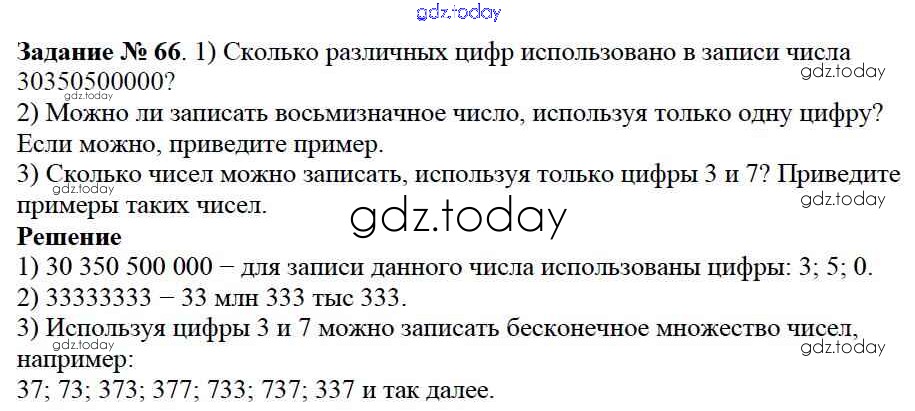 На страницах сайта gdz.today вы найдете учебный и вспомогательный материал, направленный на улучшения знаний школьной программы. ГДЗ - онлайн мир знаний 2.1. Как записывают и читают натуральные числа Решение к главе 2. Натуральные числа 66 Учебнику по Математике для 5 класса Дорофеев, Шарыгин Просвещение 2015