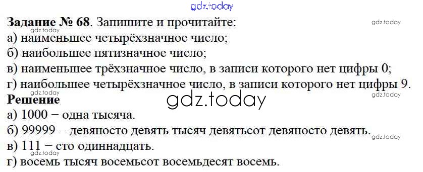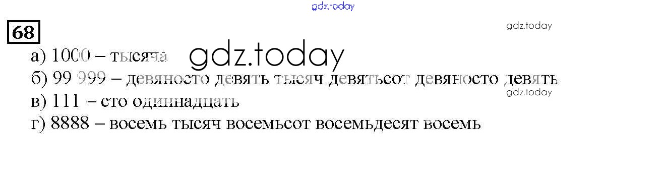 На страницах сайта gdz.today вы найдете учебный и вспомогательный материал, направленный на улучшения знаний школьной программы. ГДЗ - онлайн мир знаний 2.1. Как записывают и читают натуральные числа Решение к главе 2. Натуральные числа 68 Учебнику по Математике для 5 класса Дорофеев, Шарыгин Просвещение 2015