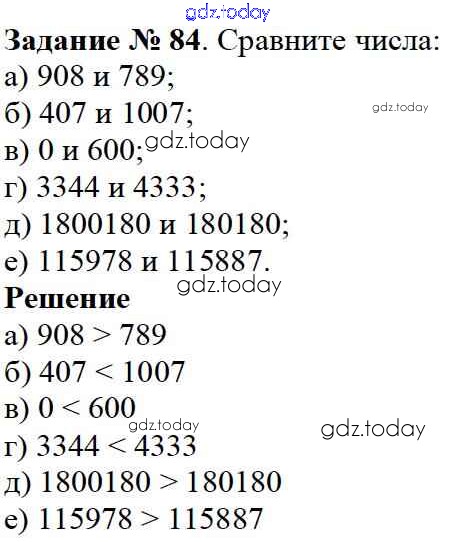 Ответы к 2.2. Натуральный ряд. Сравнение натуральных чисел Решение к главе 2. Натуральные числа 84 Учебнику по Математике для 5 класса Дорофеев, Шарыгин Просвещение 2015