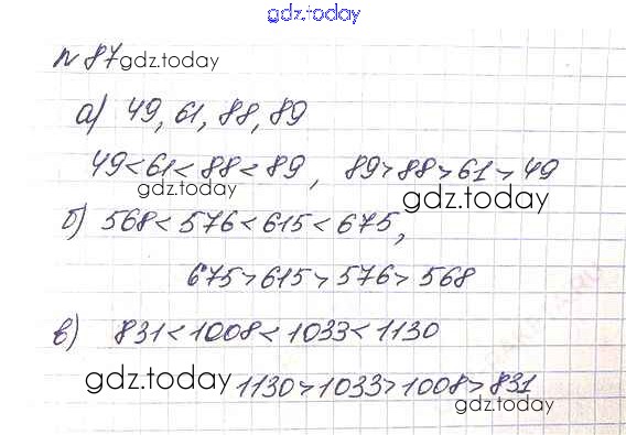 Ответы к 2.2. Натуральный ряд. Сравнение натуральных чисел Решение к главе 2. Натуральные числа 87 Учебнику по Математике для 5 класса Дорофеев, Шарыгин Просвещение 2015