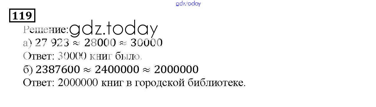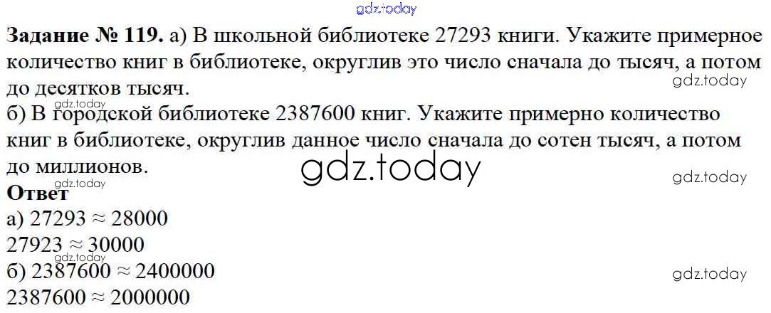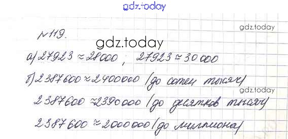 На страницах сайта gdz.today вы найдете учебный и вспомогательный материал, направленный на улучшения знаний школьной программы. ГДЗ - онлайн мир знаний 2.4. Округление натуральных чисел Решение к главе 2. Натуральные числа 119 Учебнику по Математике для 5 класса Дорофеев, Шарыгин Просвещение 2015