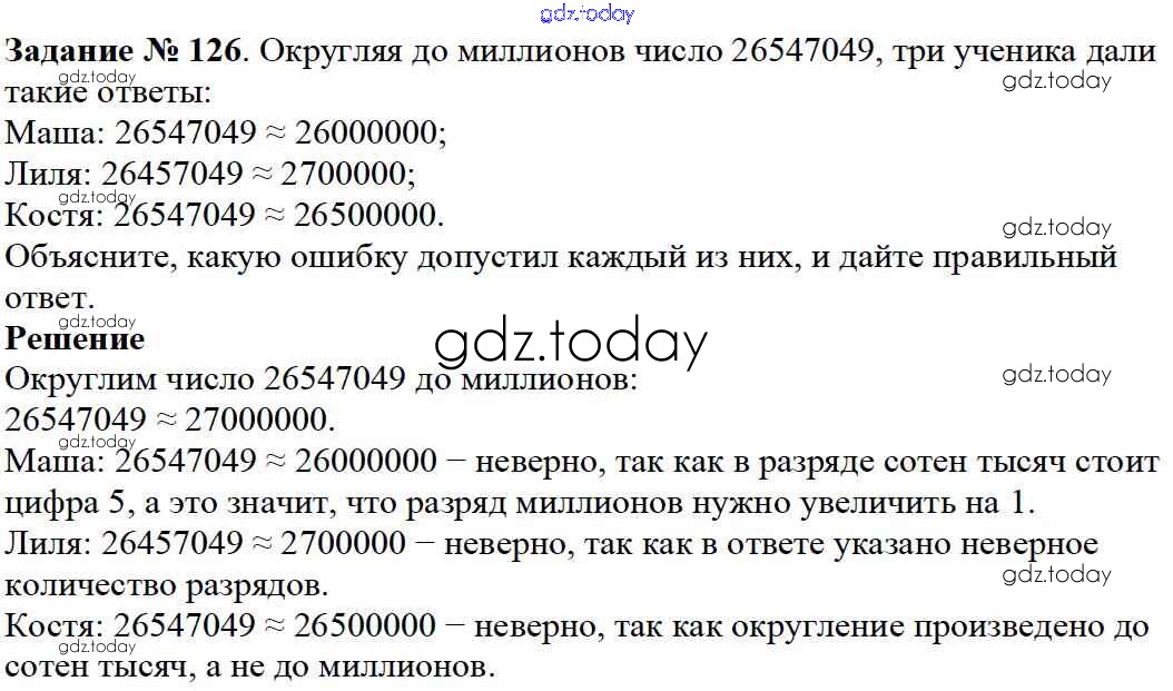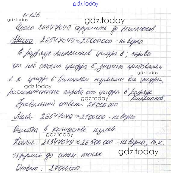 На страницах сайта gdz.today вы найдете учебный и вспомогательный материал, направленный на улучшения знаний школьной программы. ГДЗ - онлайн мир знаний 2.4. Округление натуральных чисел Решение к главе 2. Натуральные числа 126 Учебнику по Математике для 5 класса Дорофеев, Шарыгин Просвещение 2015