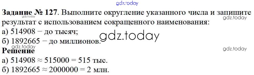 На страницах сайта gdz.today вы найдете учебный и вспомогательный материал, направленный на улучшения знаний школьной программы. ГДЗ - онлайн мир знаний 2.4. Округление натуральных чисел Решение к главе 2. Натуральные числа 127 Учебнику по Математике для 5 класса Дорофеев, Шарыгин Просвещение 2015