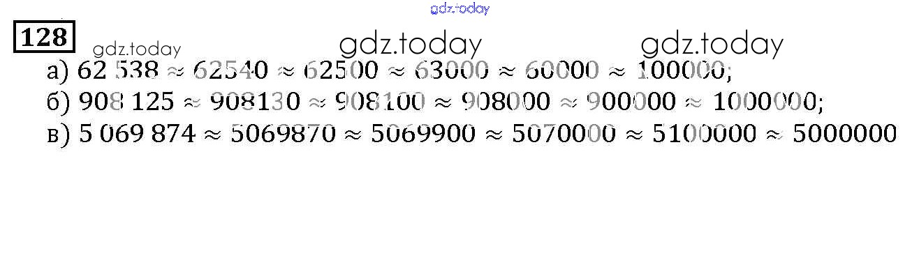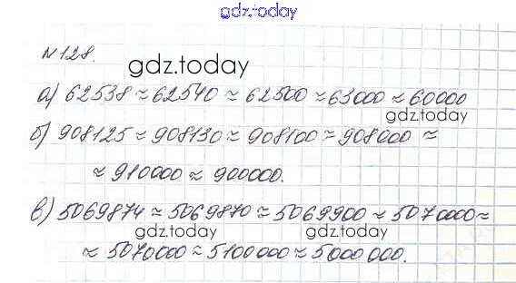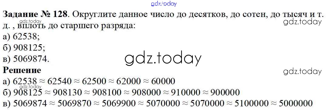 На страницах сайта gdz.today вы найдете учебный и вспомогательный материал, направленный на улучшения знаний школьной программы. ГДЗ - онлайн мир знаний 2.4. Округление натуральных чисел Решение к главе 2. Натуральные числа 128 Учебнику по Математике для 5 класса Дорофеев, Шарыгин Просвещение 2015