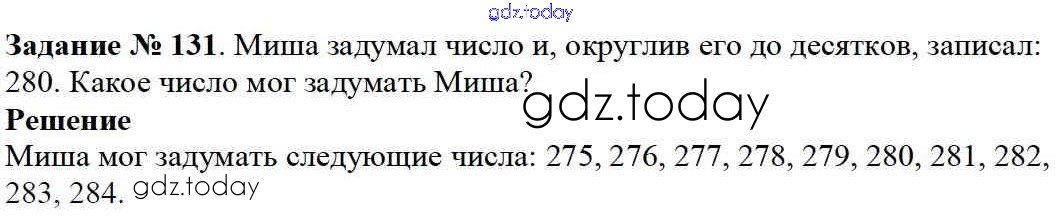 На страницах сайта gdz.today вы найдете учебный и вспомогательный материал, направленный на улучшения знаний школьной программы. ГДЗ - онлайн мир знаний 2.4. Округление натуральных чисел Решение к главе 2. Натуральные числа 131 Учебнику по Математике для 5 класса Дорофеев, Шарыгин Просвещение 2015