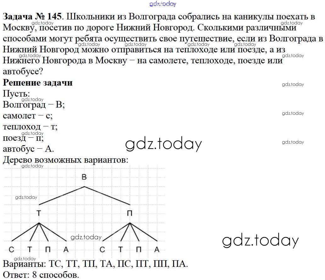Ответы к 2.5. Решение комбинаторных задач Решение к главе 2. Натуральные числа 145 Учебнику по Математике для 5 класса Дорофеев, Шарыгин Просвещение 2015
