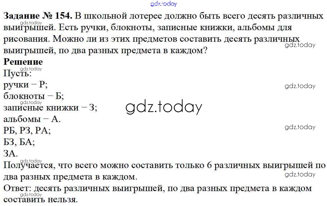 На страницах сайта gdz.today вы найдете учебный и вспомогательный материал, направленный на улучшения знаний школьной программы. ГДЗ - онлайн мир знаний 2.5. Решение комбинаторных задач Решение к главе 2. Натуральные числа 154 Учебнику по Математике для 5 класса Дорофеев, Шарыгин Просвещение 2015