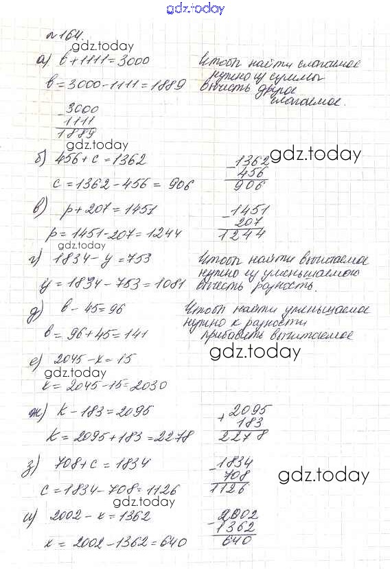 Ответы к 3.1. Сложение и вычитание Решение к главе 3. Действия с натуральными числами 164 Учебнику по Математике для 5 класса Дорофеев, Шарыгин Просвещение 2015