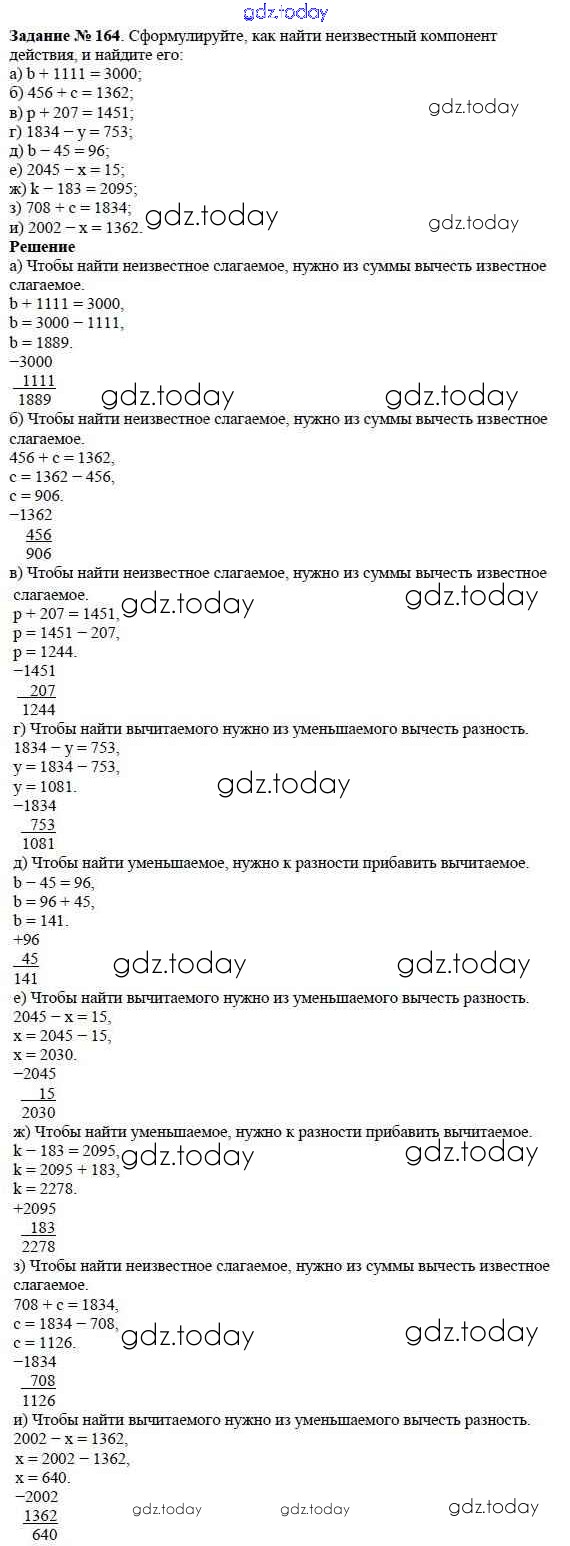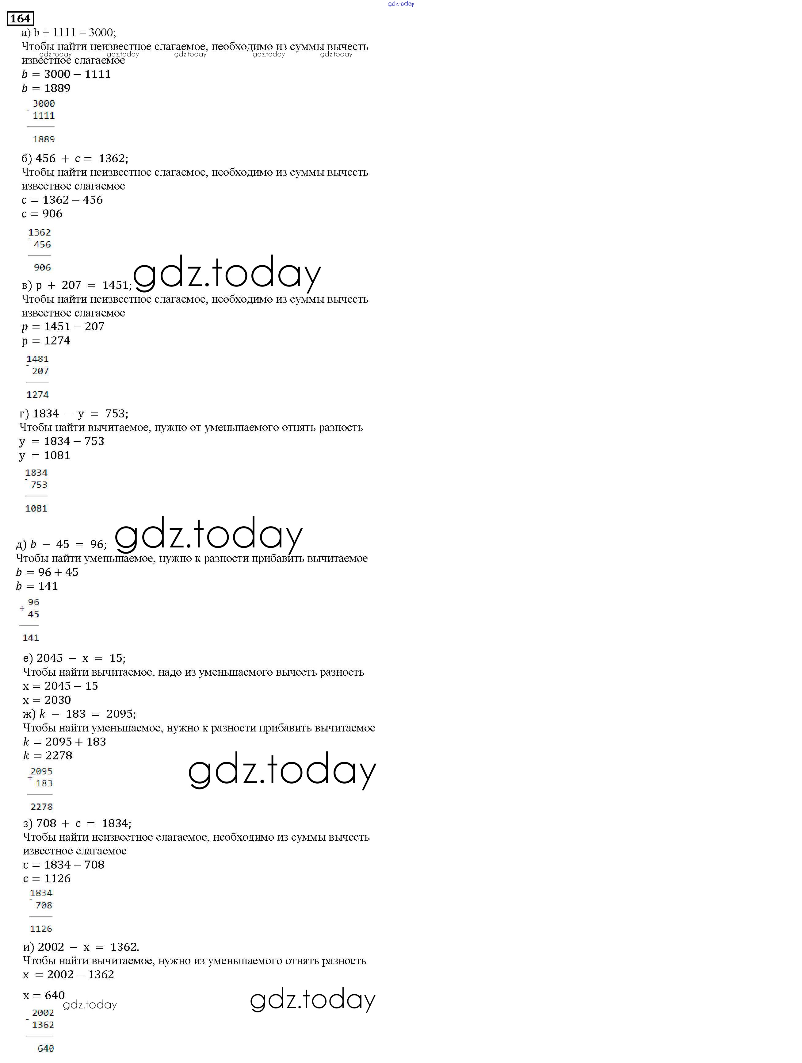 На страницах сайта gdz.today вы найдете учебный и вспомогательный материал, направленный на улучшения знаний школьной программы. ГДЗ - онлайн мир знаний 3.1. Сложение и вычитание Решение к главе 3. Действия с натуральными числами 164 Учебнику по Математике для 5 класса Дорофеев, Шарыгин Просвещение 2015
