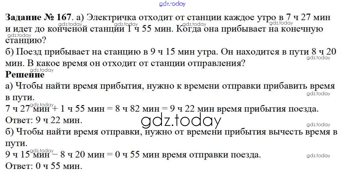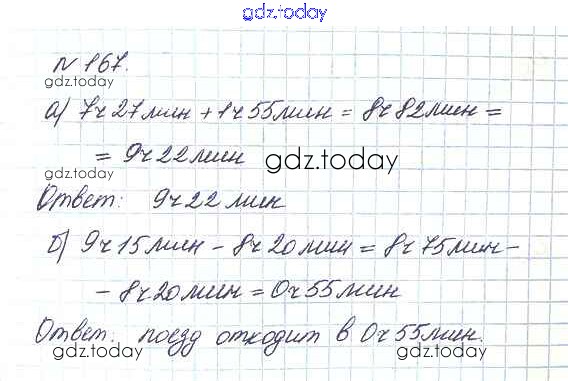 На страницах сайта gdz.today вы найдете учебный и вспомогательный материал, направленный на улучшения знаний школьной программы. ГДЗ - онлайн мир знаний 3.1. Сложение и вычитание Решение к главе 3. Действия с натуральными числами 167 Учебнику по Математике для 5 класса Дорофеев, Шарыгин Просвещение 2015
