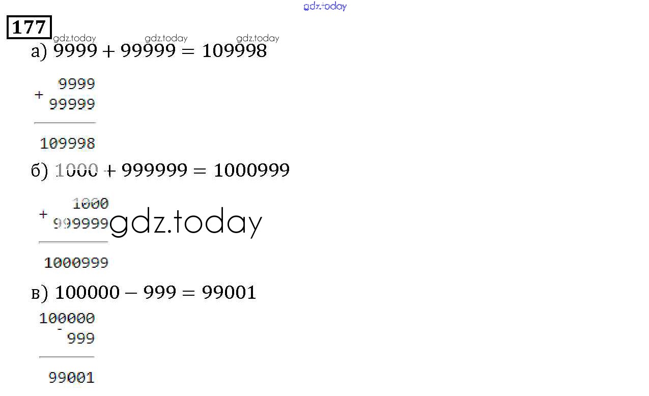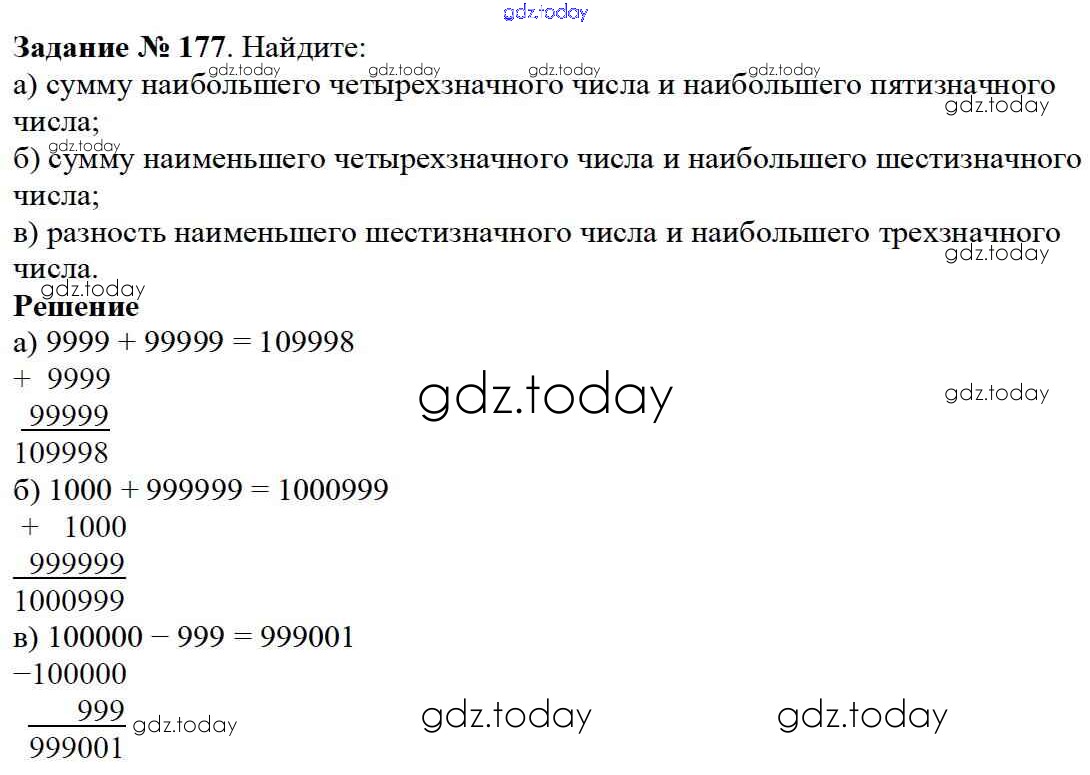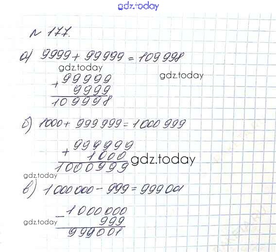 На страницах сайта gdz.today вы найдете учебный и вспомогательный материал, направленный на улучшения знаний школьной программы. ГДЗ - онлайн мир знаний 3.1. Сложение и вычитание Решение к главе 3. Действия с натуральными числами 177 Учебнику по Математике для 5 класса Дорофеев, Шарыгин Просвещение 2015