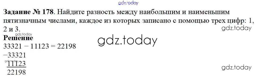 На страницах сайта gdz.today вы найдете учебный и вспомогательный материал, направленный на улучшения знаний школьной программы. ГДЗ - онлайн мир знаний 3.1. Сложение и вычитание Решение к главе 3. Действия с натуральными числами 178 Учебнику по Математике для 5 класса Дорофеев, Шарыгин Просвещение 2015