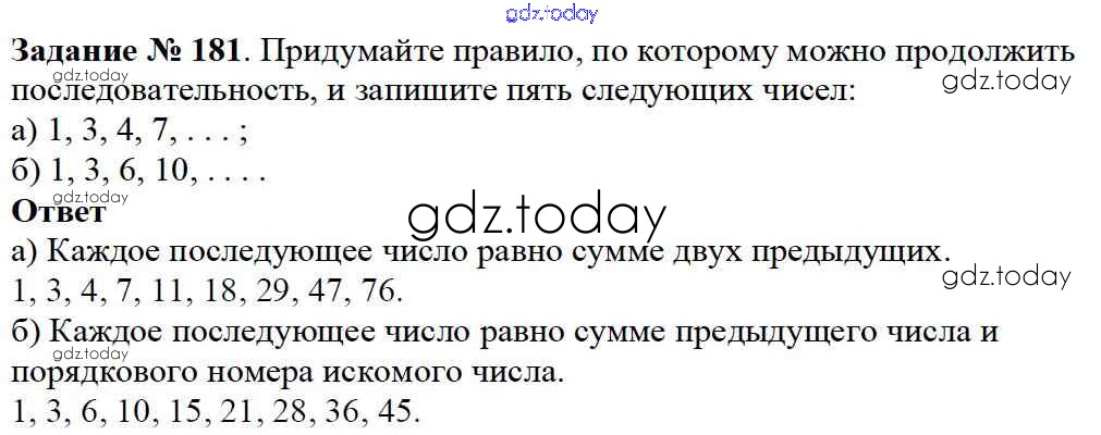 На страницах сайта gdz.today вы найдете учебный и вспомогательный материал, направленный на улучшения знаний школьной программы. ГДЗ - онлайн мир знаний 3.1. Сложение и вычитание Решение к главе 3. Действия с натуральными числами 181 Учебнику по Математике для 5 класса Дорофеев, Шарыгин Просвещение 2015