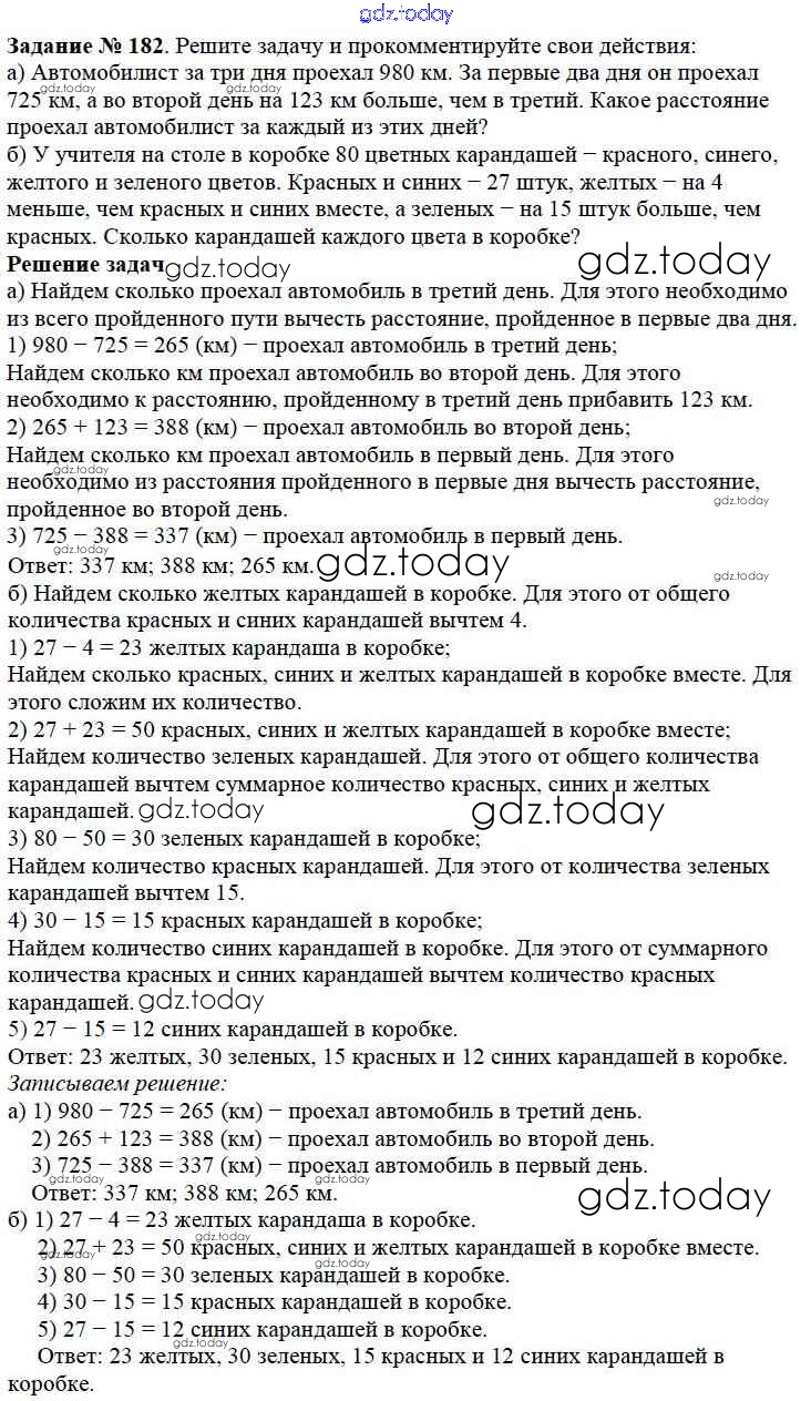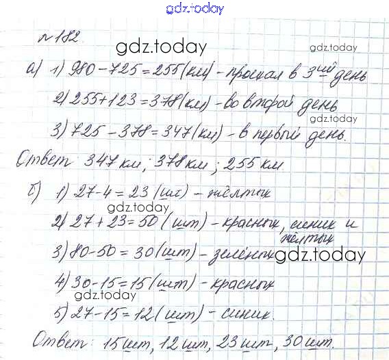 На страницах сайта gdz.today вы найдете учебный и вспомогательный материал, направленный на улучшения знаний школьной программы. ГДЗ - онлайн мир знаний 3.1. Сложение и вычитание Решение к главе 3. Действия с натуральными числами 182 Учебнику по Математике для 5 класса Дорофеев, Шарыгин Просвещение 2015