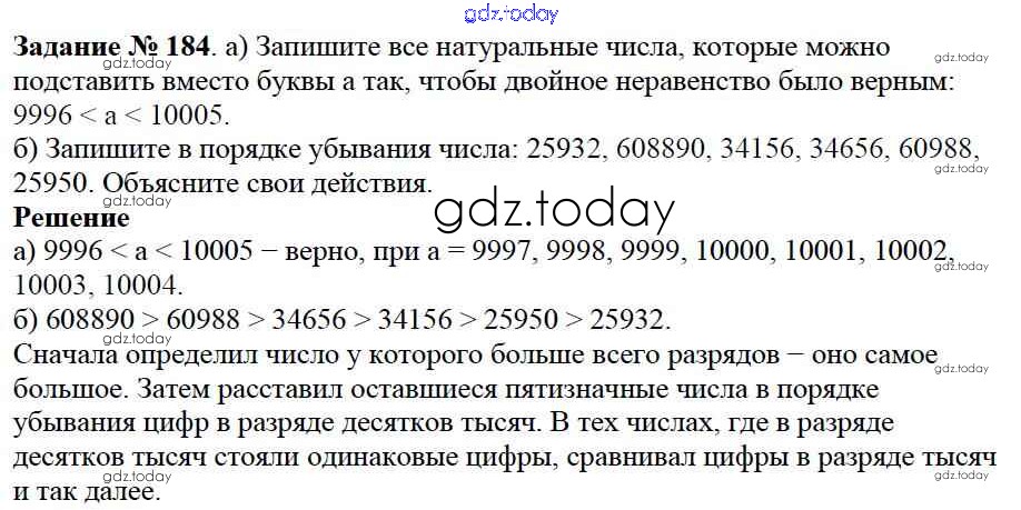 На страницах сайта gdz.today вы найдете учебный и вспомогательный материал, направленный на улучшения знаний школьной программы. ГДЗ - онлайн мир знаний 3.1. Сложение и вычитание Решение к главе 3. Действия с натуральными числами 184 Учебнику по Математике для 5 класса Дорофеев, Шарыгин Просвещение 2015