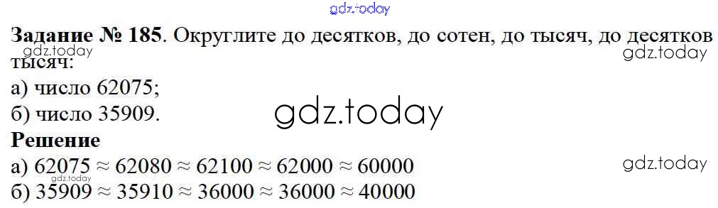 На страницах сайта gdz.today вы найдете учебный и вспомогательный материал, направленный на улучшения знаний школьной программы. ГДЗ - онлайн мир знаний 3.1. Сложение и вычитание Решение к главе 3. Действия с натуральными числами 185 Учебнику по Математике для 5 класса Дорофеев, Шарыгин Просвещение 2015