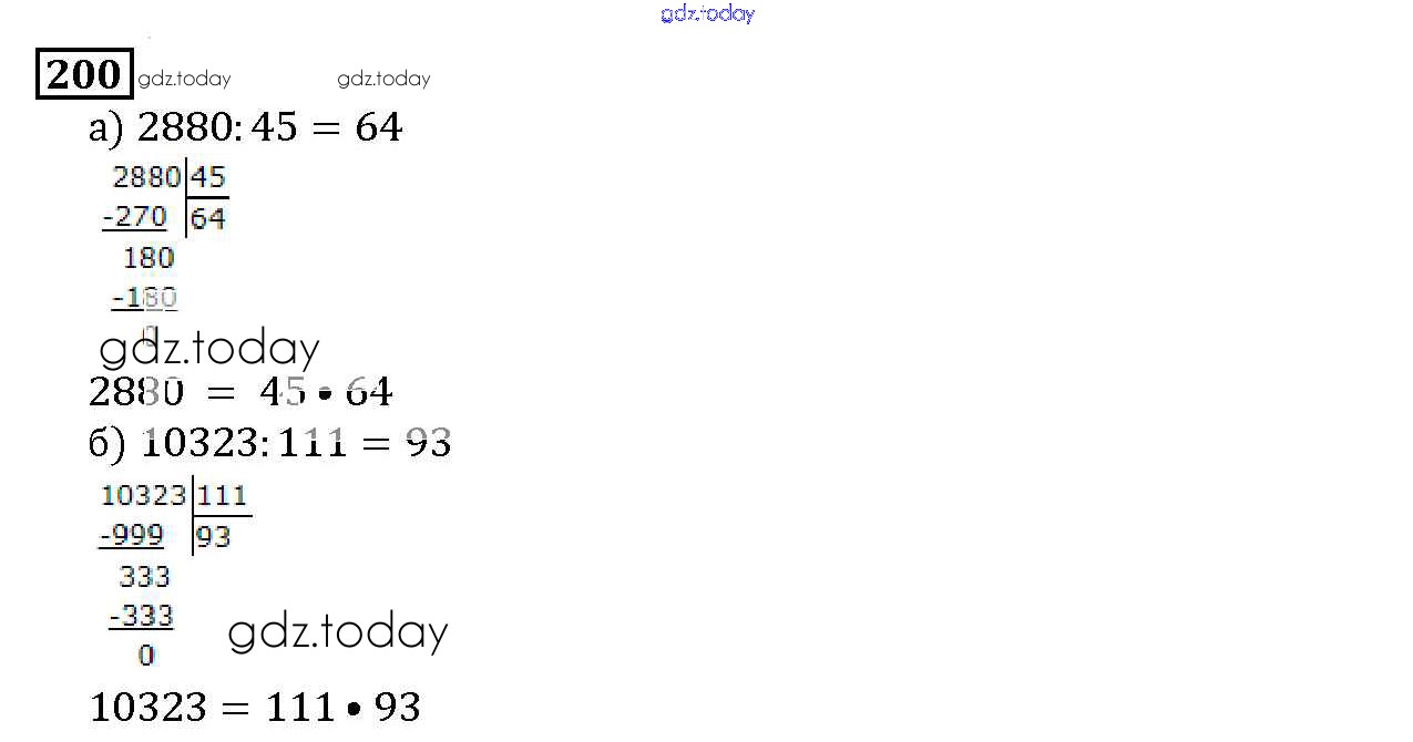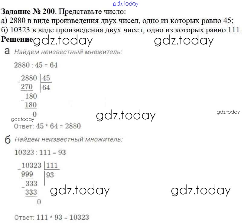 На страницах сайта gdz.today вы найдете учебный и вспомогательный материал, направленный на улучшения знаний школьной программы. ГДЗ - онлайн мир знаний 3.2. Умножение и деление Решение к главе 3. Действия с натуральными числами 200 Учебнику по Математике для 5 класса Дорофеев, Шарыгин Просвещение 2015