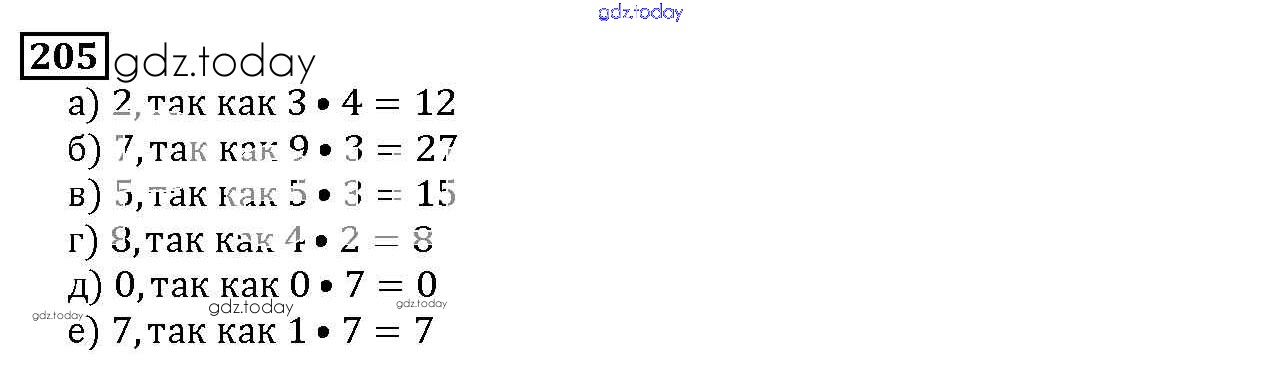 На страницах сайта gdz.today вы найдете учебный и вспомогательный материал, направленный на улучшения знаний школьной программы. ГДЗ - онлайн мир знаний 3.2. Умножение и деление Решение к главе 3. Действия с натуральными числами 205 Учебнику по Математике для 5 класса Дорофеев, Шарыгин Просвещение 2015