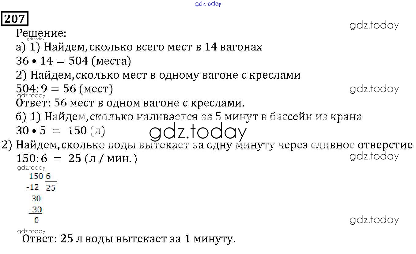 На страницах сайта gdz.today вы найдете учебный и вспомогательный материал, направленный на улучшения знаний школьной программы. ГДЗ - онлайн мир знаний 3.2. Умножение и деление Решение к главе 3. Действия с натуральными числами 207 Учебнику по Математике для 5 класса Дорофеев, Шарыгин Просвещение 2015