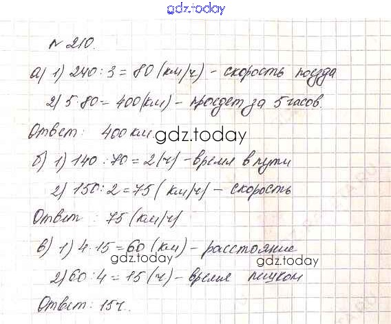 На страницах сайта gdz.today вы найдете учебный и вспомогательный материал, направленный на улучшения знаний школьной программы. ГДЗ - онлайн мир знаний 3.2. Умножение и деление Решение к главе 3. Действия с натуральными числами 210 Учебнику по Математике для 5 класса Дорофеев, Шарыгин Просвещение 2015