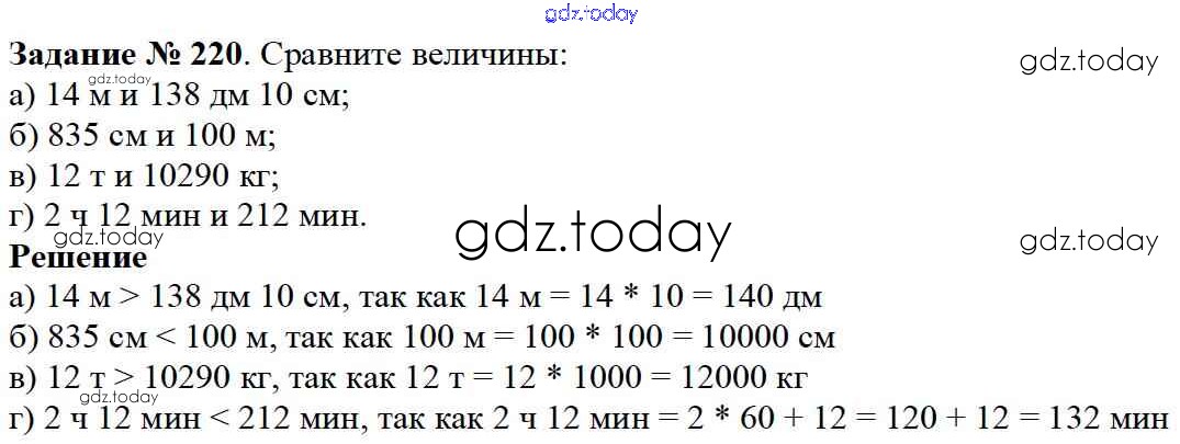 На страницах сайта gdz.today вы найдете учебный и вспомогательный материал, направленный на улучшения знаний школьной программы. ГДЗ - онлайн мир знаний 3.2. Умножение и деление Решение к главе 3. Действия с натуральными числами 220 Учебнику по Математике для 5 класса Дорофеев, Шарыгин Просвещение 2015