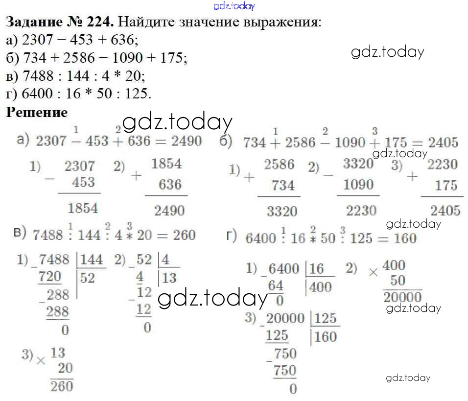 На страницах сайта gdz.today вы найдете учебный и вспомогательный материал, направленный на улучшения знаний школьной программы. ГДЗ - онлайн мир знаний 3.3. Порядок действий в вычислениях Решение к главе 3. Действия с натуральными числами 224 Учебнику по Математике для 5 класса Дорофеев, Шарыгин Просвещение 2015