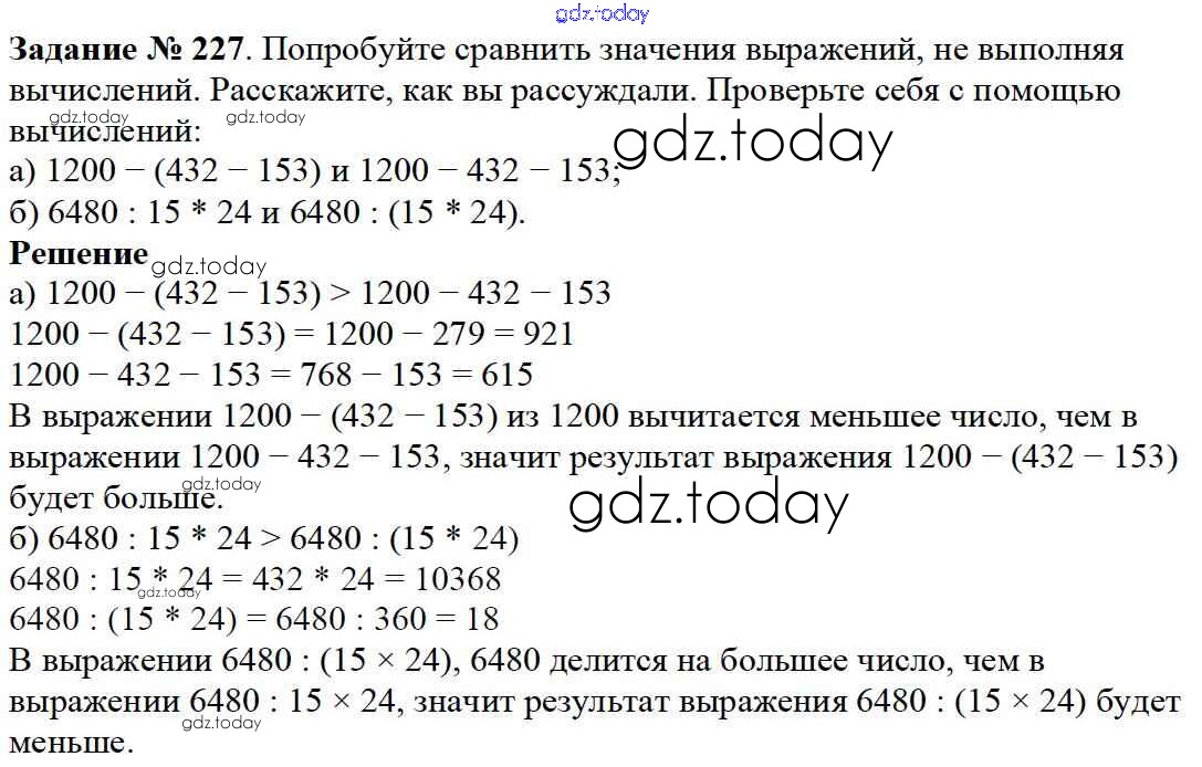На страницах сайта gdz.today вы найдете учебный и вспомогательный материал, направленный на улучшения знаний школьной программы. ГДЗ - онлайн мир знаний 3.3. Порядок действий в вычислениях Решение к главе 3. Действия с натуральными числами 227 Учебнику по Математике для 5 класса Дорофеев, Шарыгин Просвещение 2015