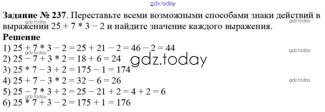 На страницах сайта gdz.today вы найдете учебный и вспомогательный материал, направленный на улучшения знаний школьной программы. ГДЗ - онлайн мир знаний 3.3. Порядок действий в вычислениях Решение к главе 3. Действия с натуральными числами 237 Учебнику по Математике для 5 класса Дорофеев, Шарыгин Просвещение 2015