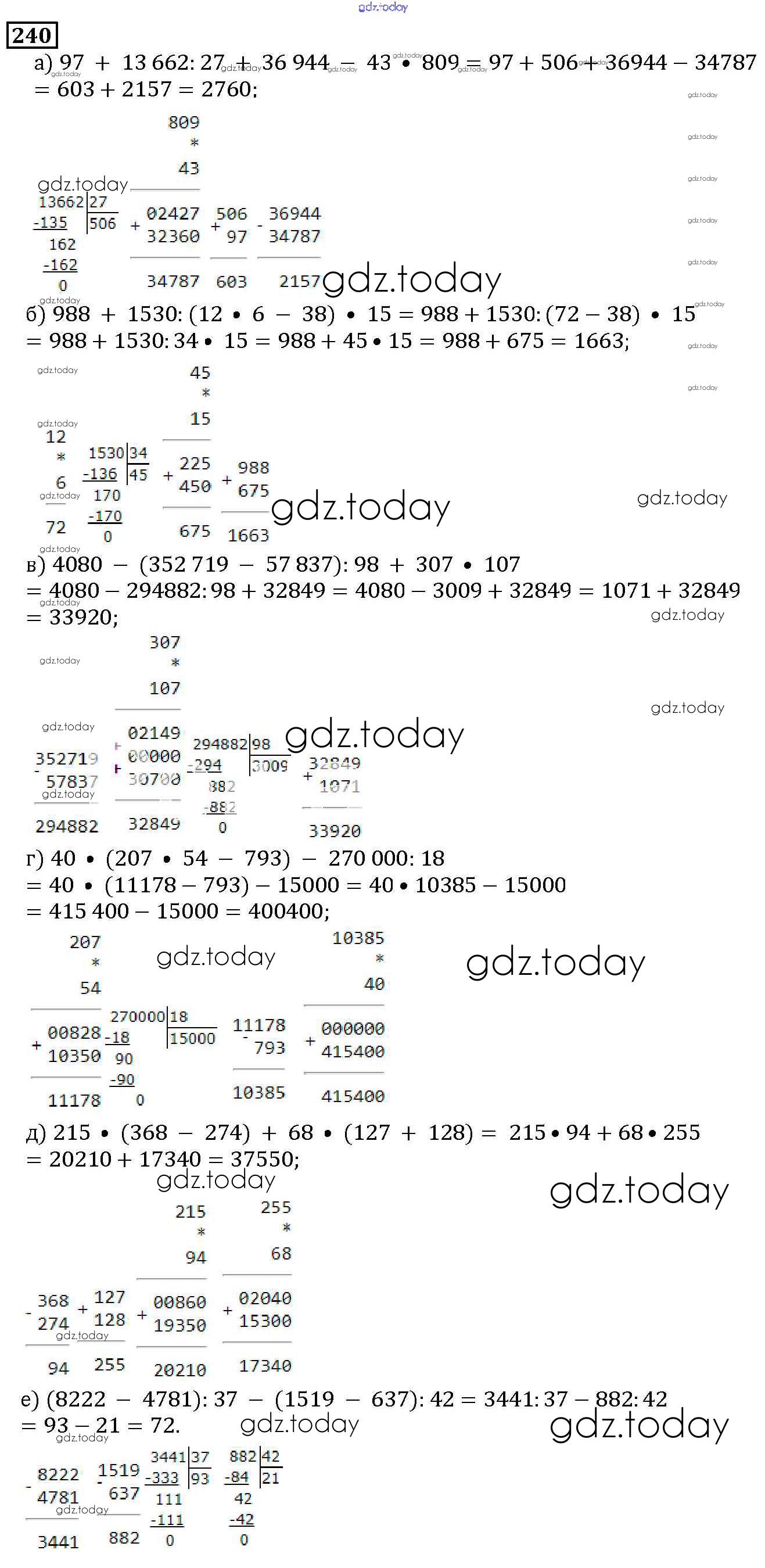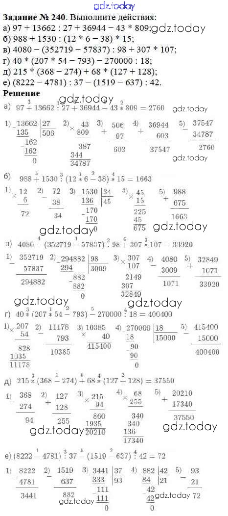 На страницах сайта gdz.today вы найдете учебный и вспомогательный материал, направленный на улучшения знаний школьной программы. ГДЗ - онлайн мир знаний 3.3. Порядок действий в вычислениях Решение к главе 3. Действия с натуральными числами 240 Учебнику по Математике для 5 класса Дорофеев, Шарыгин Просвещение 2015