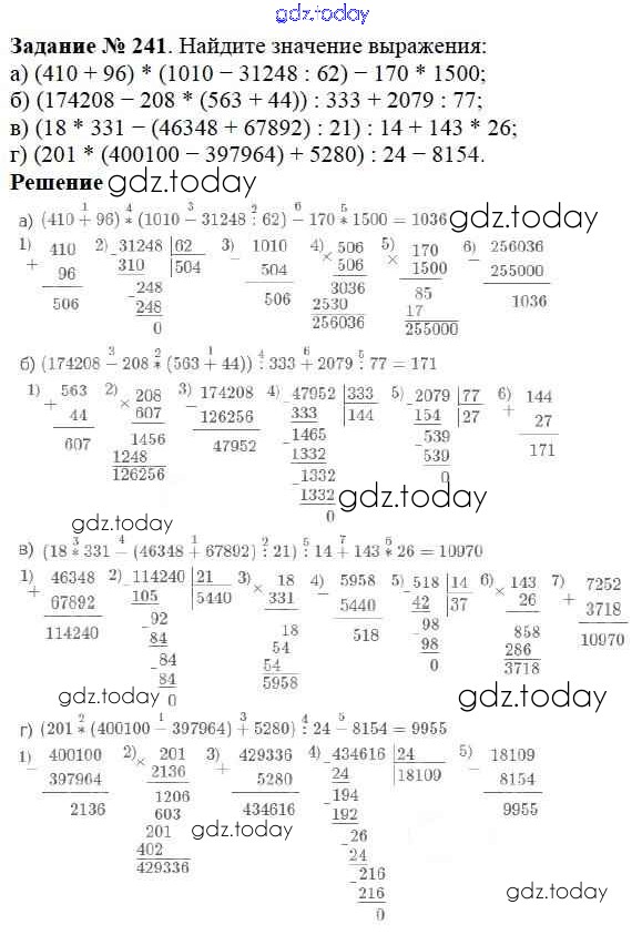 На страницах сайта gdz.today вы найдете учебный и вспомогательный материал, направленный на улучшения знаний школьной программы. ГДЗ - онлайн мир знаний 3.3. Порядок действий в вычислениях Решение к главе 3. Действия с натуральными числами 241 Учебнику по Математике для 5 класса Дорофеев, Шарыгин Просвещение 2015