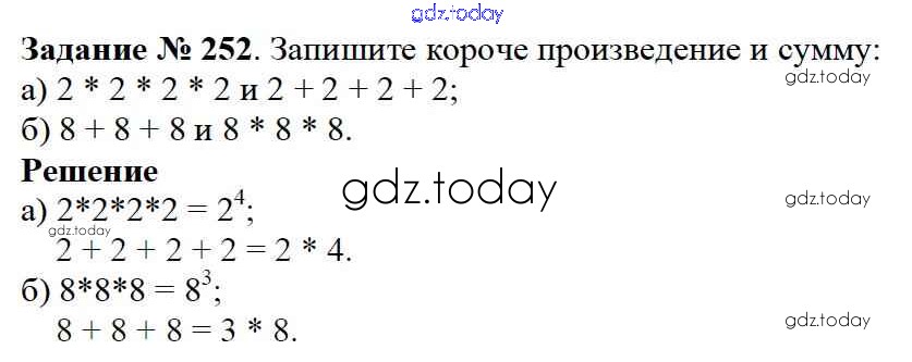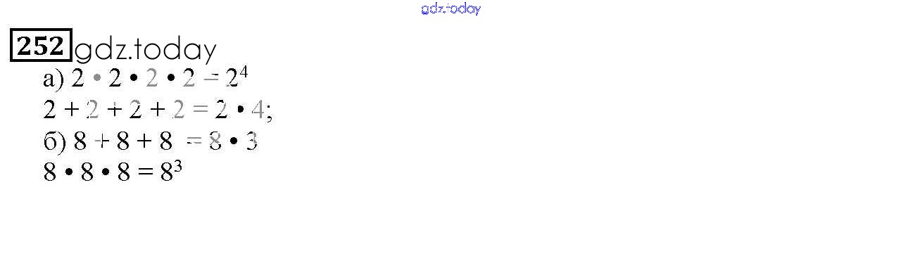 На страницах сайта gdz.today вы найдете учебный и вспомогательный материал, направленный на улучшения знаний школьной программы. ГДЗ - онлайн мир знаний 3.4. Степень числа Решение к главе 3. Действия с натуральными числами 252 Учебнику по Математике для 5 класса Дорофеев, Шарыгин Просвещение 2015