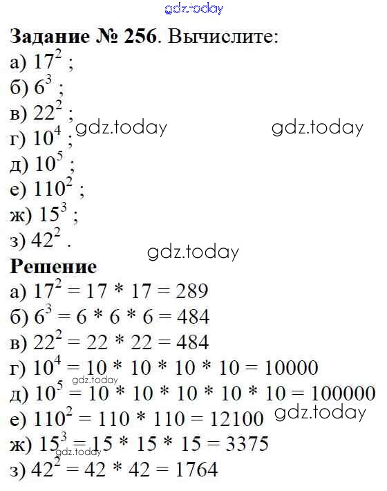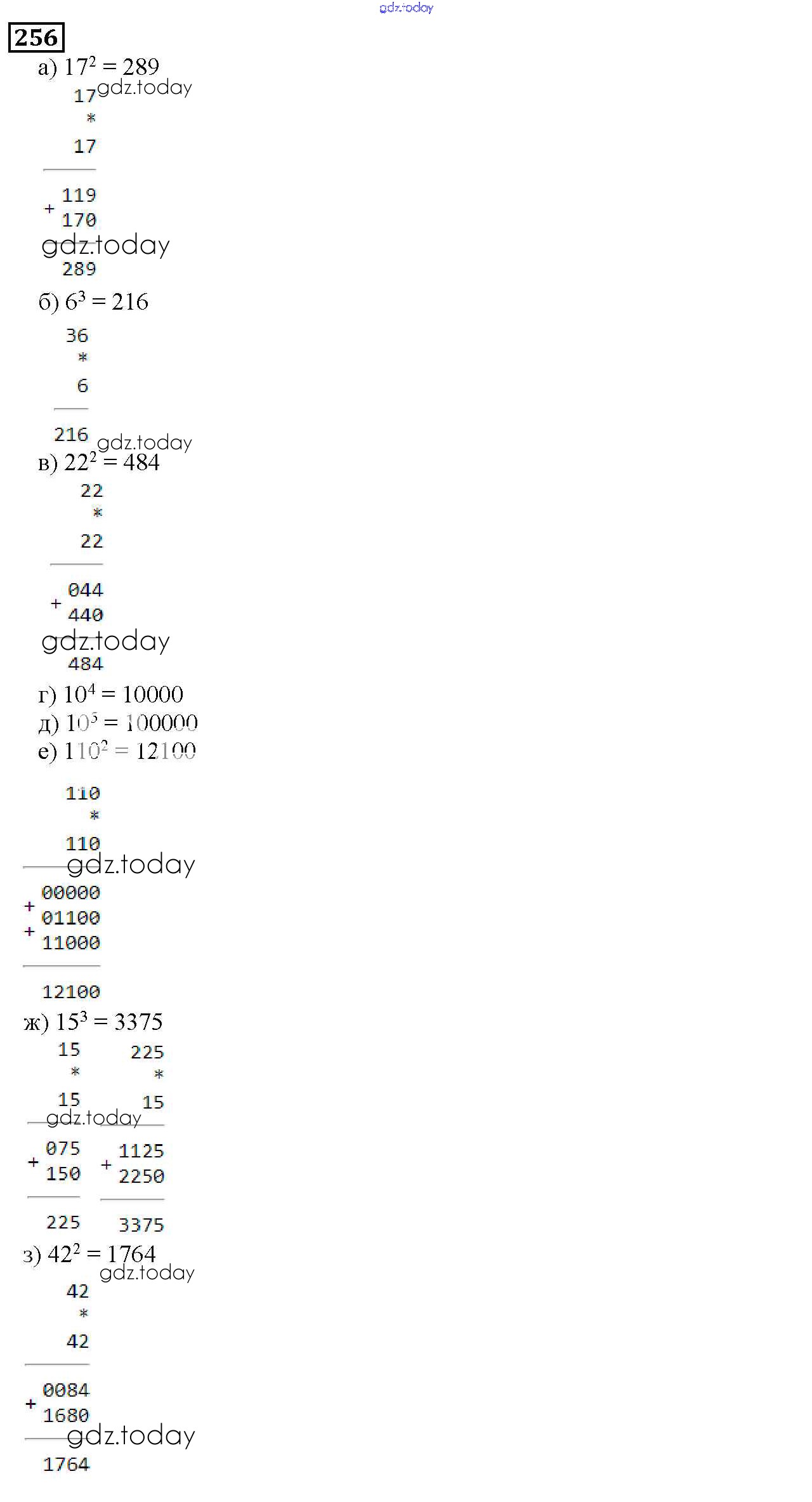 На страницах сайта gdz.today вы найдете учебный и вспомогательный материал, направленный на улучшения знаний школьной программы. ГДЗ - онлайн мир знаний 3.4. Степень числа Решение к главе 3. Действия с натуральными числами 256 Учебнику по Математике для 5 класса Дорофеев, Шарыгин Просвещение 2015