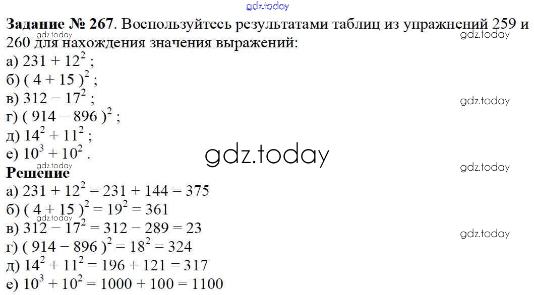 На страницах сайта gdz.today вы найдете учебный и вспомогательный материал, направленный на улучшения знаний школьной программы. ГДЗ - онлайн мир знаний 3.4. Степень числа Решение к главе 3. Действия с натуральными числами 267 Учебнику по Математике для 5 класса Дорофеев, Шарыгин Просвещение 2015