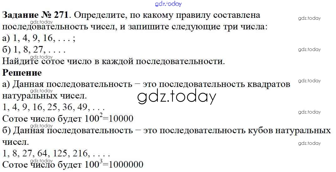 На страницах сайта gdz.today вы найдете учебный и вспомогательный материал, направленный на улучшения знаний школьной программы. ГДЗ - онлайн мир знаний 3.4. Степень числа Решение к главе 3. Действия с натуральными числами 271 Учебнику по Математике для 5 класса Дорофеев, Шарыгин Просвещение 2015