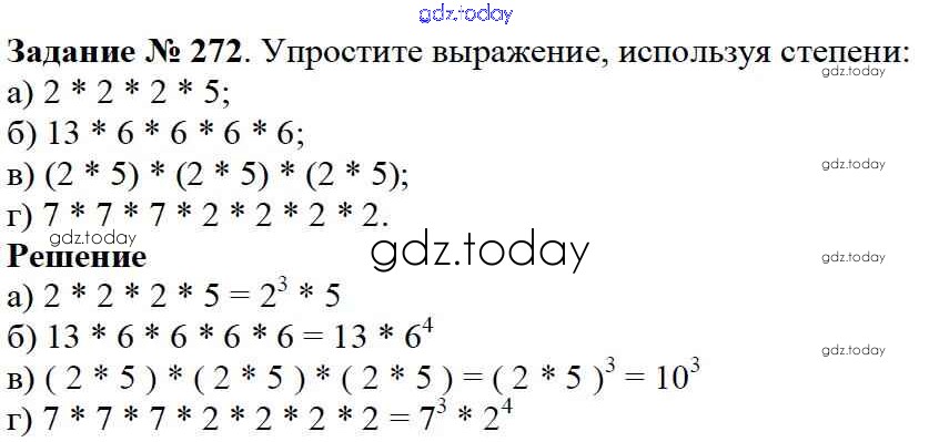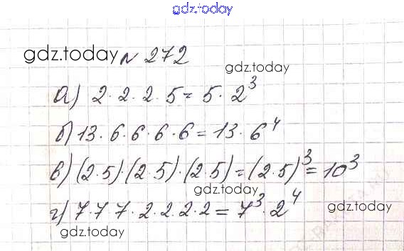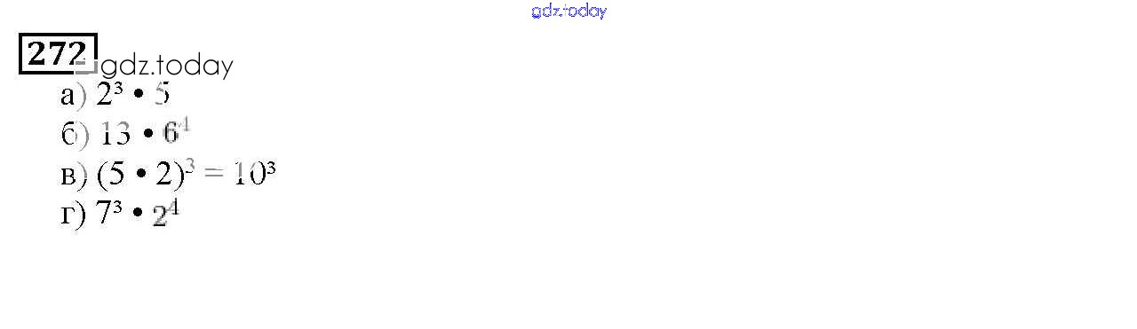 На страницах сайта gdz.today вы найдете учебный и вспомогательный материал, направленный на улучшения знаний школьной программы. ГДЗ - онлайн мир знаний 3.4. Степень числа Решение к главе 3. Действия с натуральными числами 272 Учебнику по Математике для 5 класса Дорофеев, Шарыгин Просвещение 2015