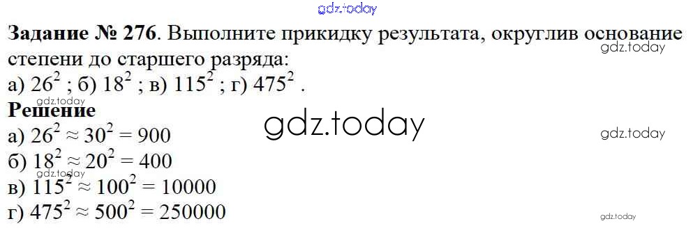 На страницах сайта gdz.today вы найдете учебный и вспомогательный материал, направленный на улучшения знаний школьной программы. ГДЗ - онлайн мир знаний 3.4. Степень числа Решение к главе 3. Действия с натуральными числами 276 Учебнику по Математике для 5 класса Дорофеев, Шарыгин Просвещение 2015