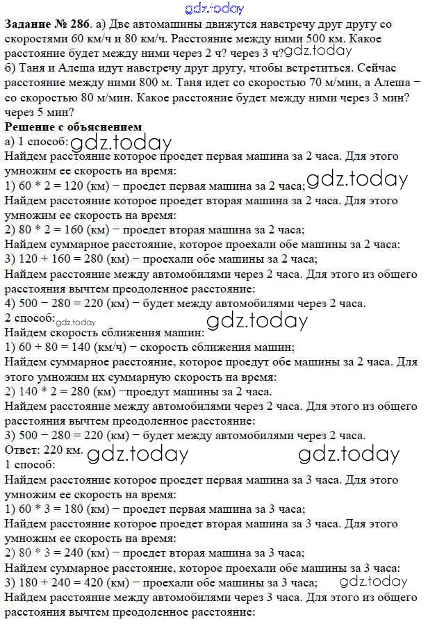 На страницах сайта gdz.today вы найдете учебный и вспомогательный материал, направленный на улучшения знаний школьной программы. ГДЗ - онлайн мир знаний 3.5. Задачи на движение Решение к главе 3. Действия с натуральными числами 286 Учебнику по Математике для 5 класса Дорофеев, Шарыгин Просвещение 2015