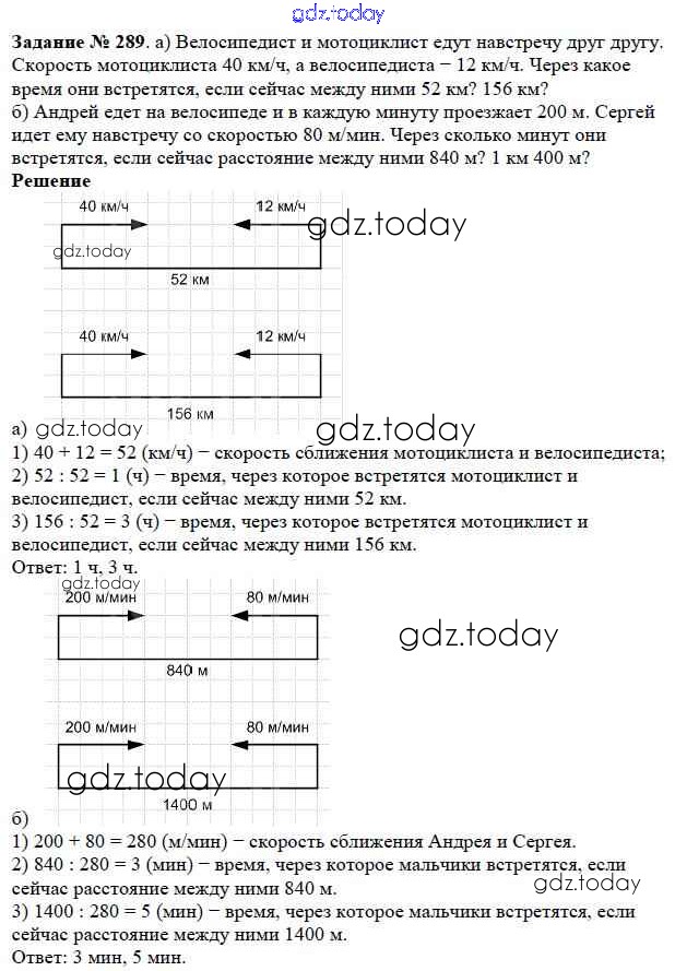 На страницах сайта gdz.today вы найдете учебный и вспомогательный материал, направленный на улучшения знаний школьной программы. ГДЗ - онлайн мир знаний 3.5. Задачи на движение Решение к главе 3. Действия с натуральными числами 289 Учебнику по Математике для 5 класса Дорофеев, Шарыгин Просвещение 2015