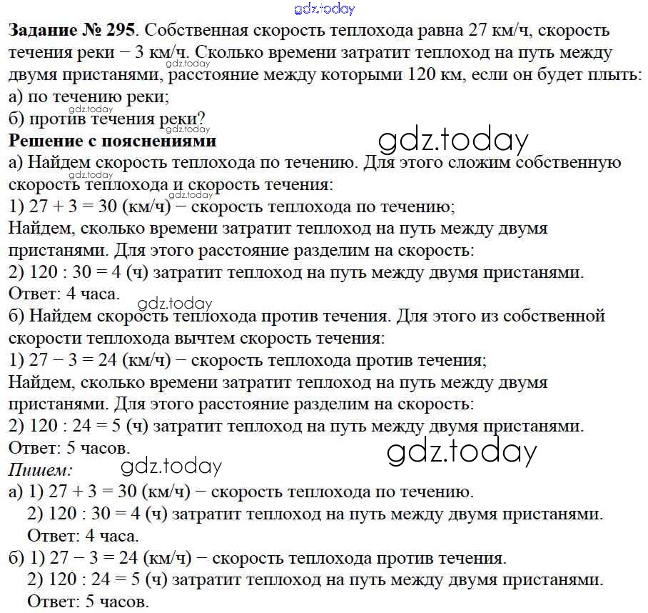 На страницах сайта gdz.today вы найдете учебный и вспомогательный материал, направленный на улучшения знаний школьной программы. ГДЗ - онлайн мир знаний 3.5. Задачи на движение Решение к главе 3. Действия с натуральными числами 295 Учебнику по Математике для 5 класса Дорофеев, Шарыгин Просвещение 2015