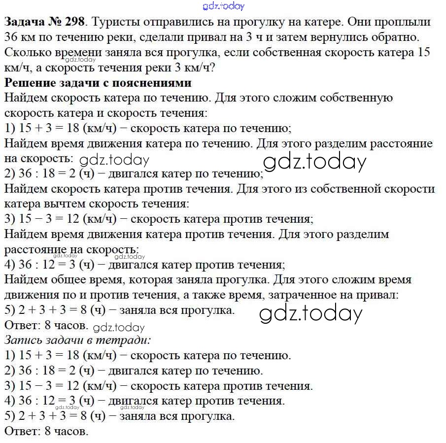 На страницах сайта gdz.today вы найдете учебный и вспомогательный материал, направленный на улучшения знаний школьной программы. ГДЗ - онлайн мир знаний 3.5. Задачи на движение Решение к главе 3. Действия с натуральными числами 298 Учебнику по Математике для 5 класса Дорофеев, Шарыгин Просвещение 2015