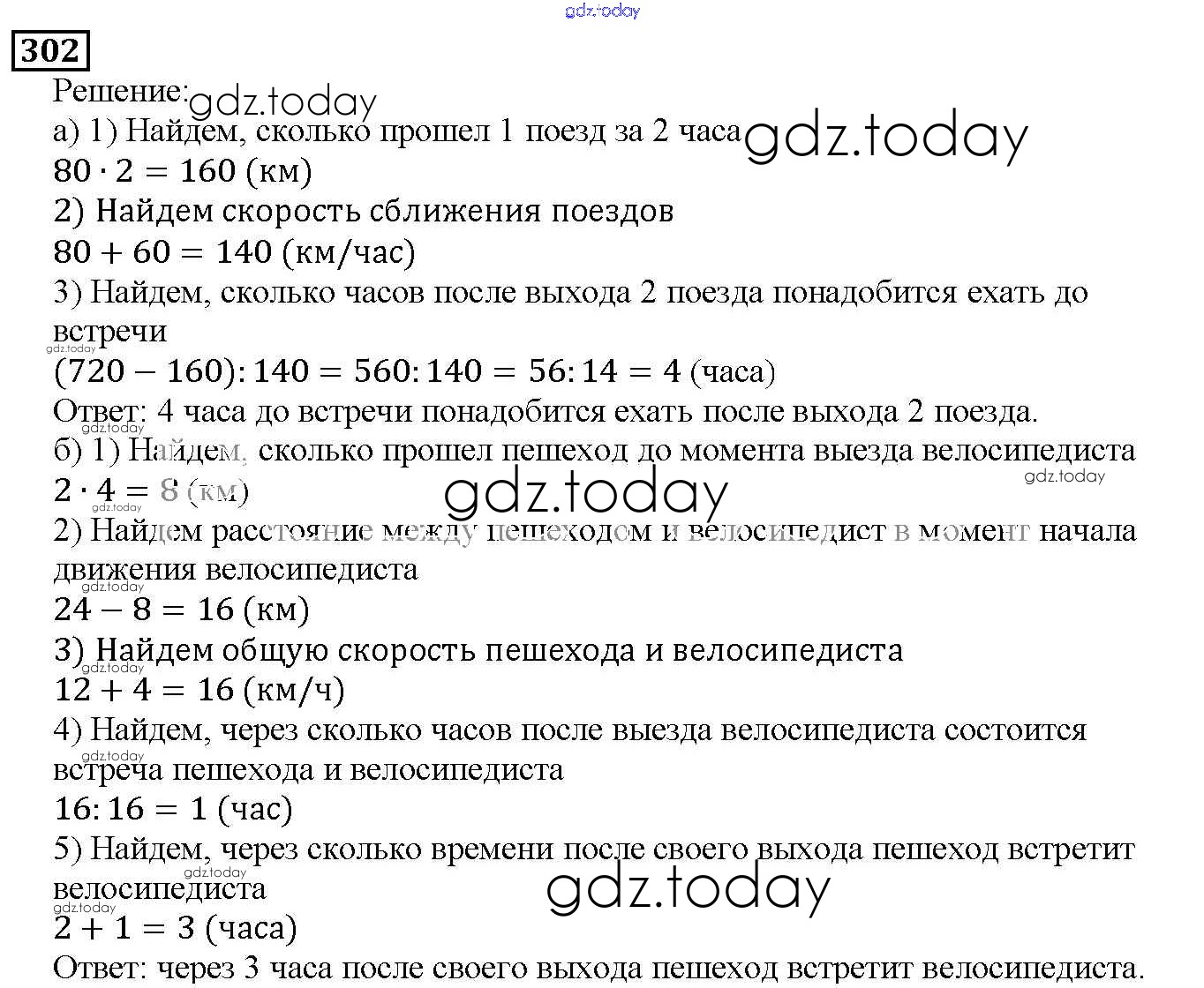 На страницах сайта gdz.today вы найдете учебный и вспомогательный материал, направленный на улучшения знаний школьной программы. ГДЗ - онлайн мир знаний 3.5. Задачи на движение Решение к главе 3. Действия с натуральными числами 302 Учебнику по Математике для 5 класса Дорофеев, Шарыгин Просвещение 2015