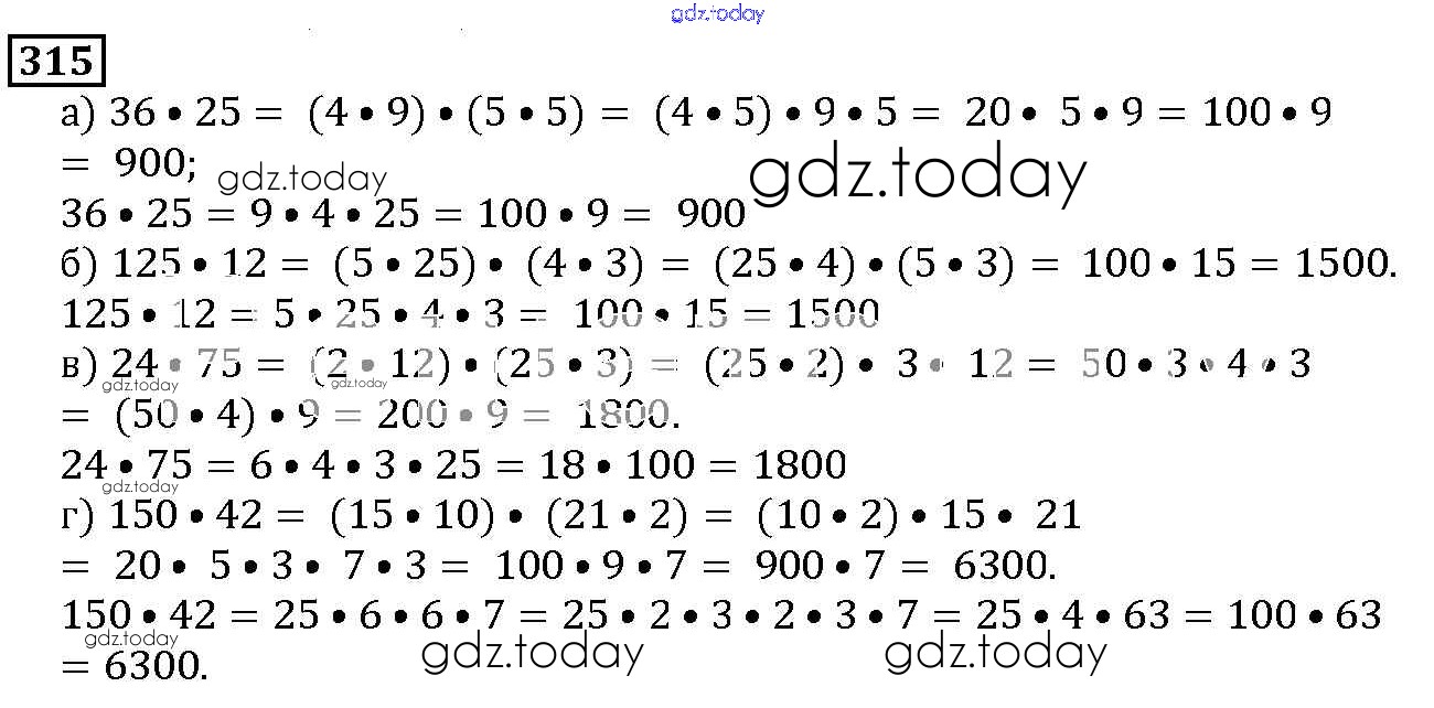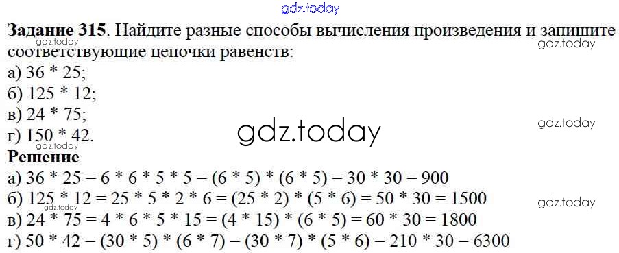 На страницах сайта gdz.today вы найдете учебный и вспомогательный материал, направленный на улучшения знаний школьной программы. ГДЗ - онлайн мир знаний 4.1. Свойства сложения и умножения Решение к главе 4. Использование свойств действий при вычислениях 315 Учебнику по Математике для 5 класса Дорофеев, Шарыгин Просвещение 2015