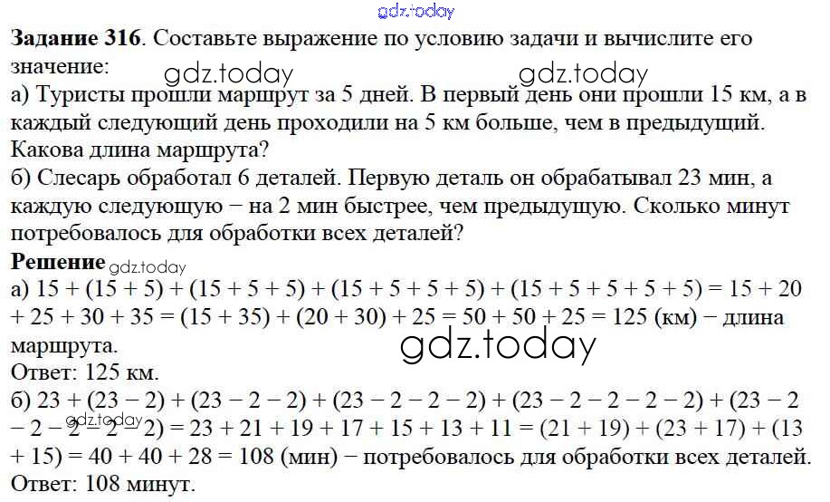 На страницах сайта gdz.today вы найдете учебный и вспомогательный материал, направленный на улучшения знаний школьной программы. ГДЗ - онлайн мир знаний 4.1. Свойства сложения и умножения Решение к главе 4. Использование свойств действий при вычислениях 316 Учебнику по Математике для 5 класса Дорофеев, Шарыгин Просвещение 2015