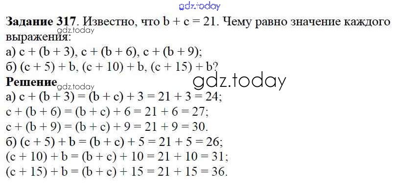 На страницах сайта gdz.today вы найдете учебный и вспомогательный материал, направленный на улучшения знаний школьной программы. ГДЗ - онлайн мир знаний 4.1. Свойства сложения и умножения Решение к главе 4. Использование свойств действий при вычислениях 317 Учебнику по Математике для 5 класса Дорофеев, Шарыгин Просвещение 2015