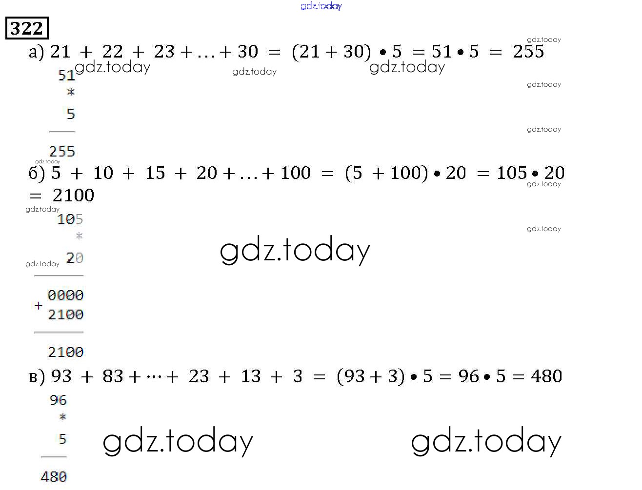 На страницах сайта gdz.today вы найдете учебный и вспомогательный материал, направленный на улучшения знаний школьной программы. ГДЗ - онлайн мир знаний 4.1. Свойства сложения и умножения Решение к главе 4. Использование свойств действий при вычислениях 322 Учебнику по Математике для 5 класса Дорофеев, Шарыгин Просвещение 2015