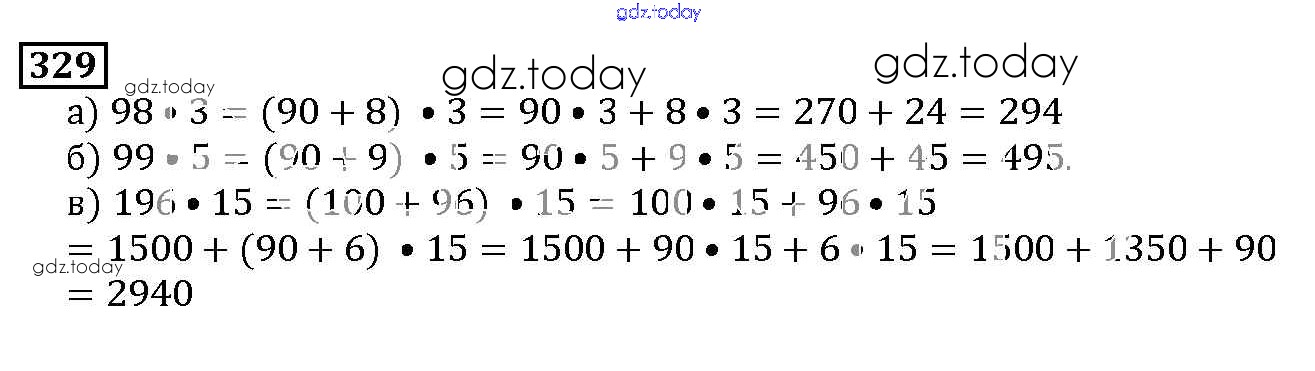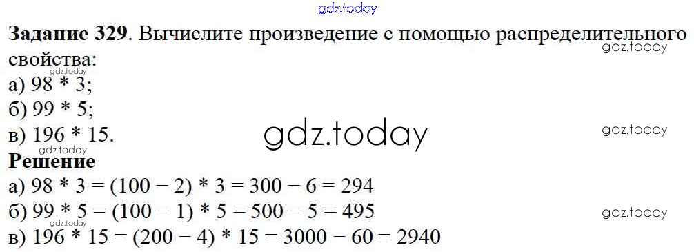 На страницах сайта gdz.today вы найдете учебный и вспомогательный материал, направленный на улучшения знаний школьной программы. ГДЗ - онлайн мир знаний 4.2. Распределительное свойство Решение к главе 4. Использование свойств действий при вычислениях 329 Учебнику по Математике для 5 класса Дорофеев, Шарыгин Просвещение 2015