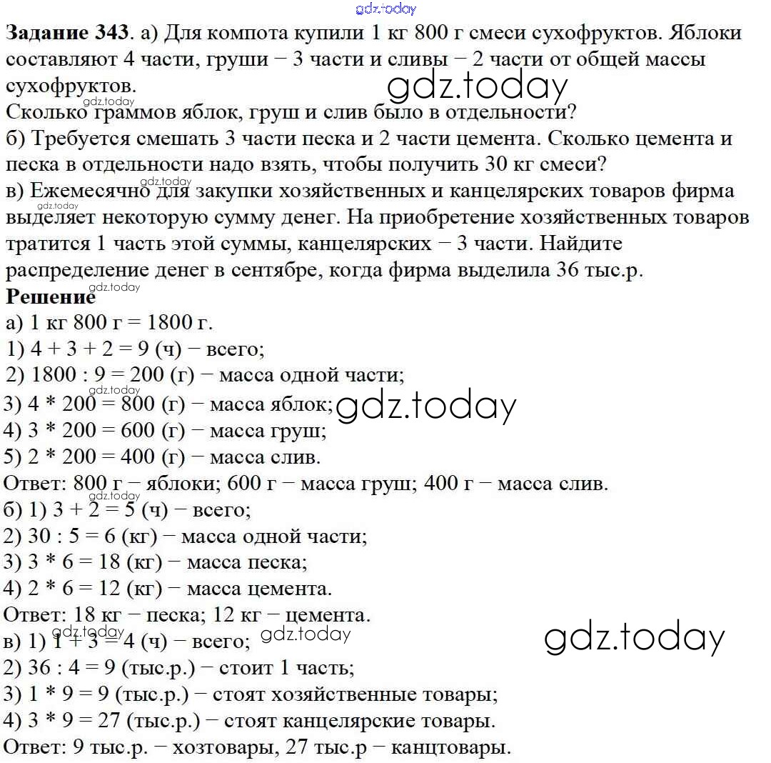 На страницах сайта gdz.today вы найдете учебный и вспомогательный материал, направленный на улучшения знаний школьной программы. ГДЗ - онлайн мир знаний 4.3. Задачи на части Решение к главе 4. Использование свойств действий при вычислениях 343 Учебнику по Математике для 5 класса Дорофеев, Шарыгин Просвещение 2015