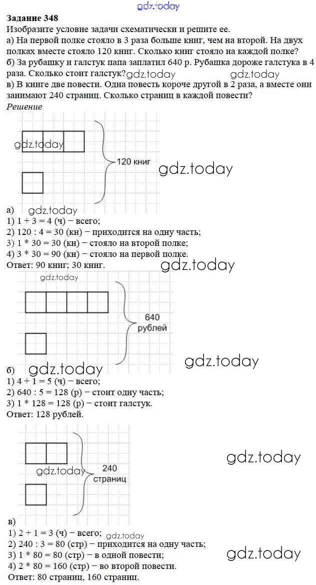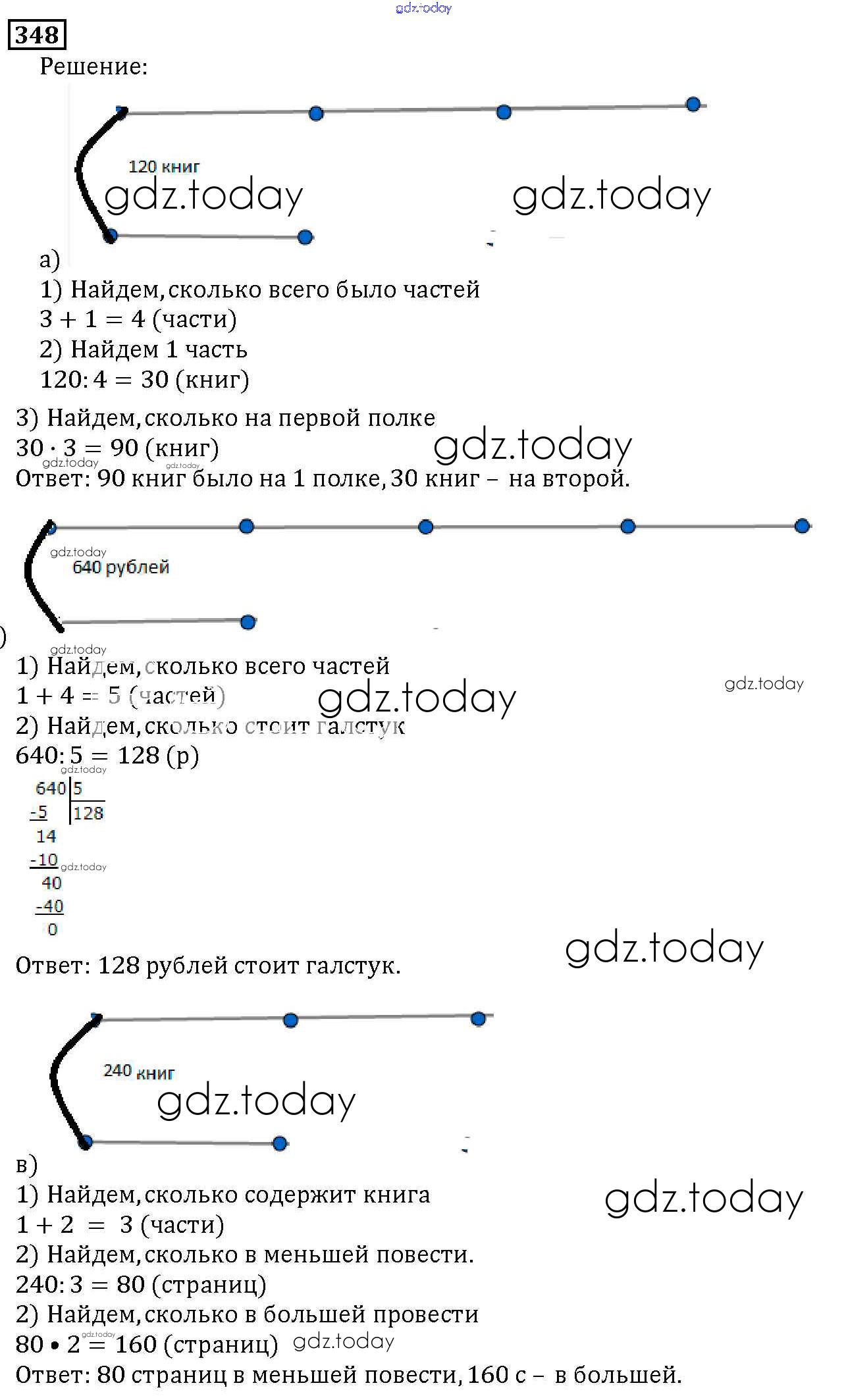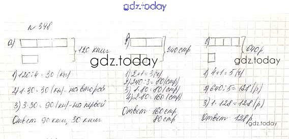 На страницах сайта gdz.today вы найдете учебный и вспомогательный материал, направленный на улучшения знаний школьной программы. ГДЗ - онлайн мир знаний 4.3. Задачи на части Решение к главе 4. Использование свойств действий при вычислениях 348 Учебнику по Математике для 5 класса Дорофеев, Шарыгин Просвещение 2015