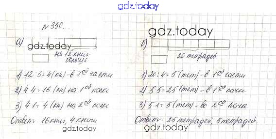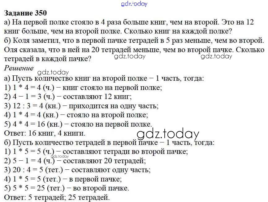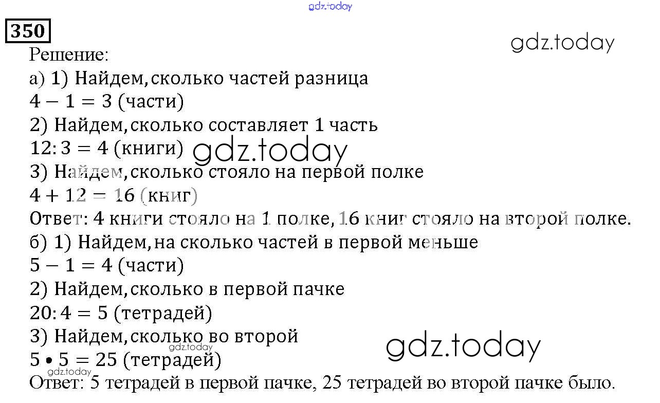 На страницах сайта gdz.today вы найдете учебный и вспомогательный материал, направленный на улучшения знаний школьной программы. ГДЗ - онлайн мир знаний 4.3. Задачи на части Решение к главе 4. Использование свойств действий при вычислениях 350 Учебнику по Математике для 5 класса Дорофеев, Шарыгин Просвещение 2015